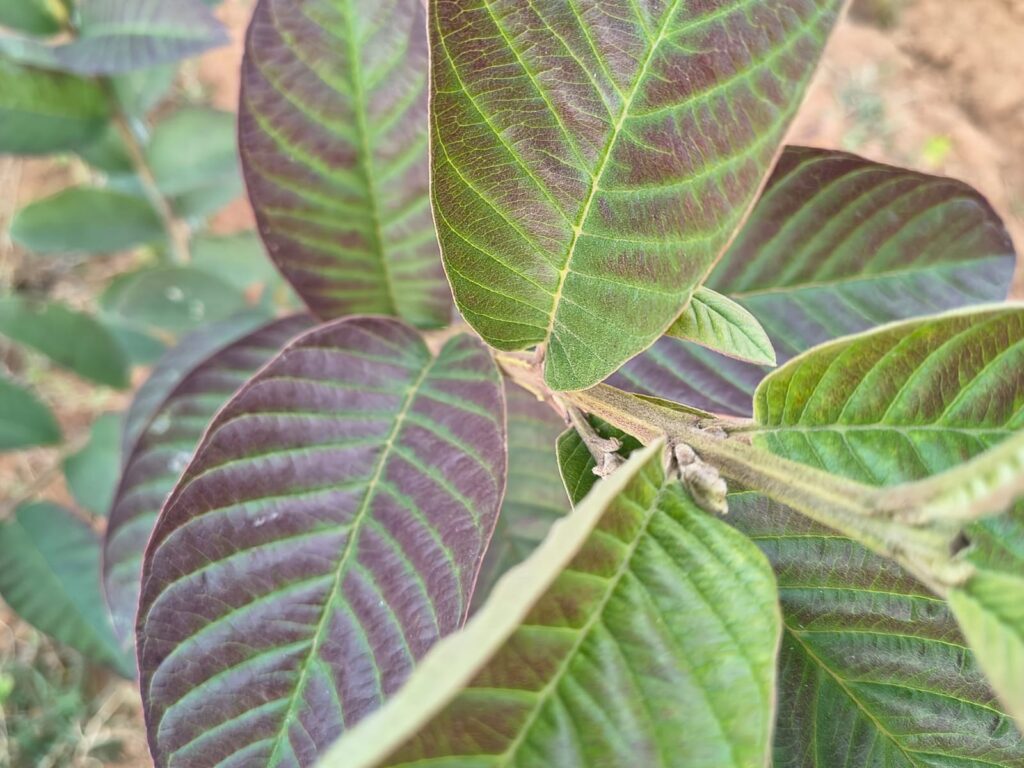 पत्तियाँ गहरी हरी, बैंगनी या लाल रंग की हो जाती हैं (खासकर नीचे की पत्तियाँ)
